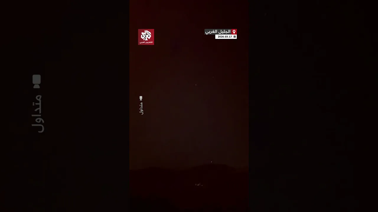 لحظة سقوط صاروخ أُطلق من لبنان في الجليل الغربي شمالي إسرائيل
