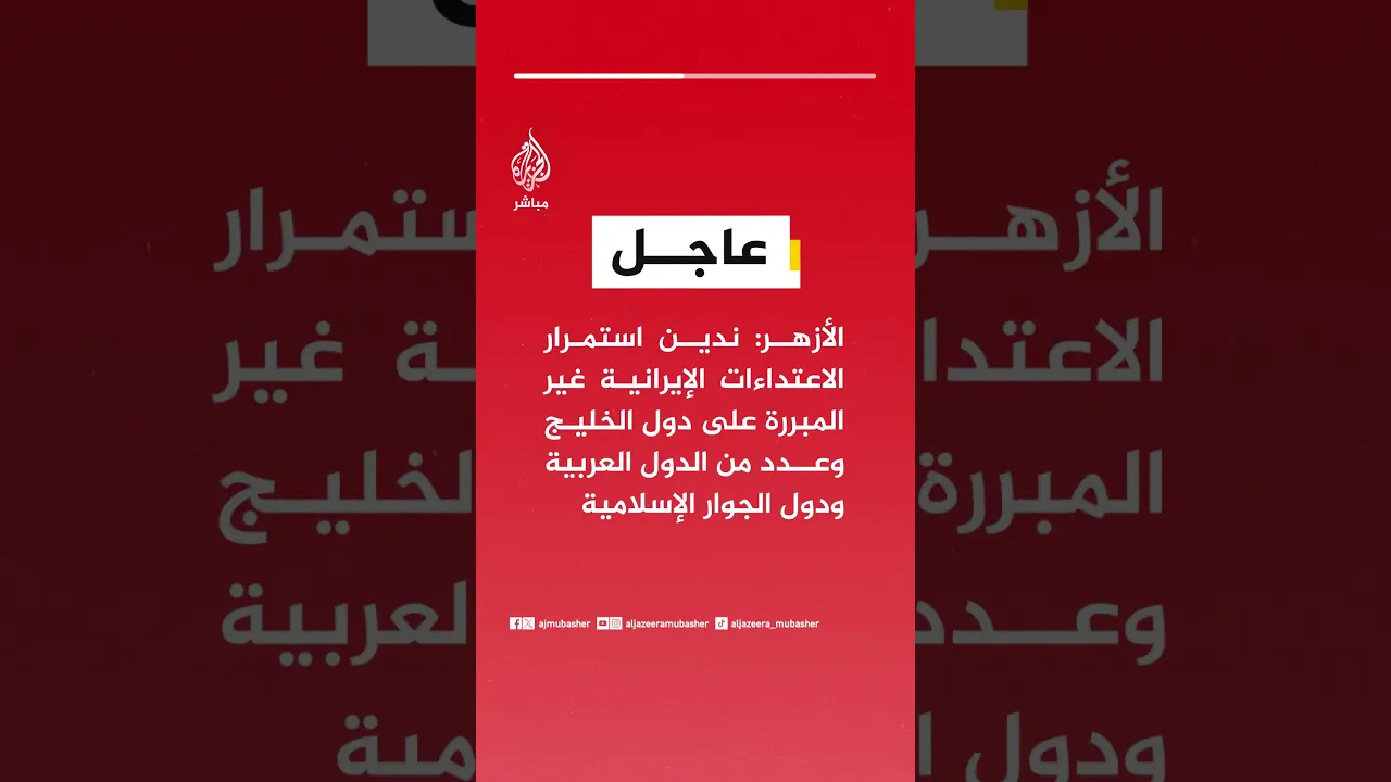 الأزهر: ندين استمرار الاعتداءات الإيرانية غير المبررة على دول الخليج وعدد من الدول العربية ودول الجوار الإسلامية