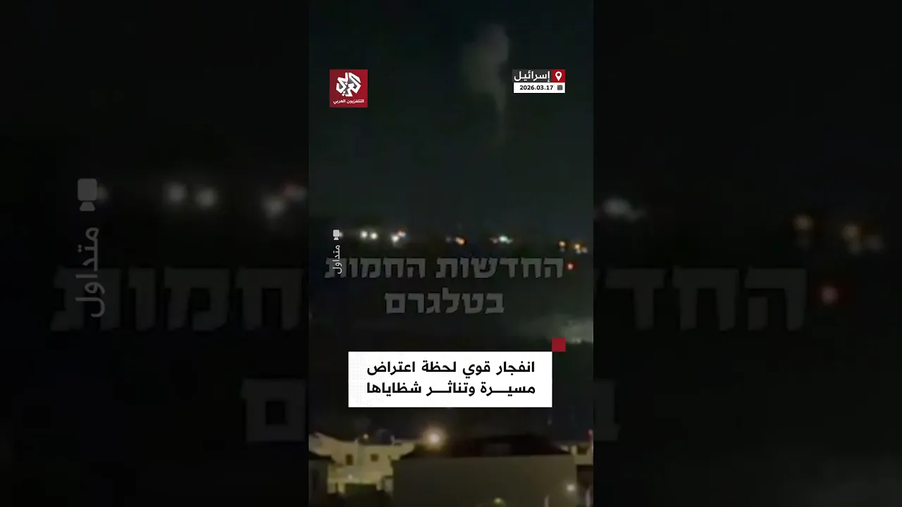 شاهد.. انفجار قوي لحظة اعتراض مسيرة وتناثر شظاياها شمالي إسرائيل