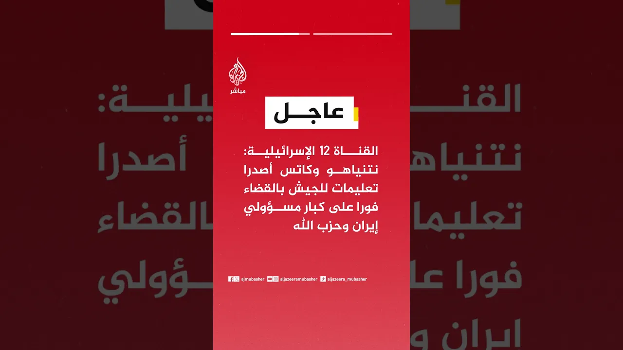 القناة ١٢ الإسرائيلية: نتنياهو وكاتس أصدرا تعليمات للجيش بالقضاء على كبار مسؤولي إيران وحزب الله