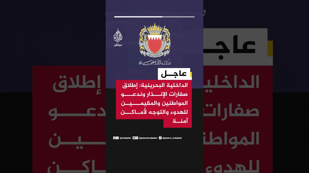 عاجل | الداخلية البحرينية: إطلاق صفارات الإنذار وندعو المواطنين والمقيمين للهدوء والتوجه لأماكن آمنة