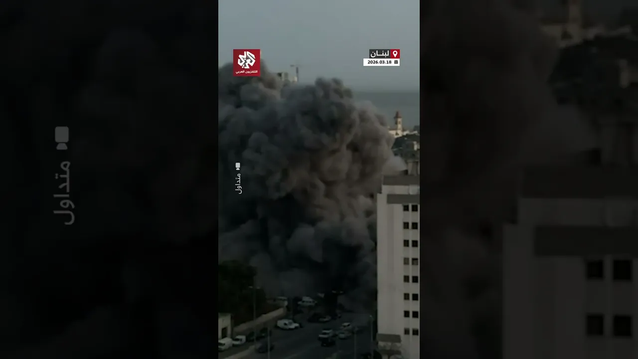 لحظة استهداف مبنى في وسط بيروت وانهياره بالكامل