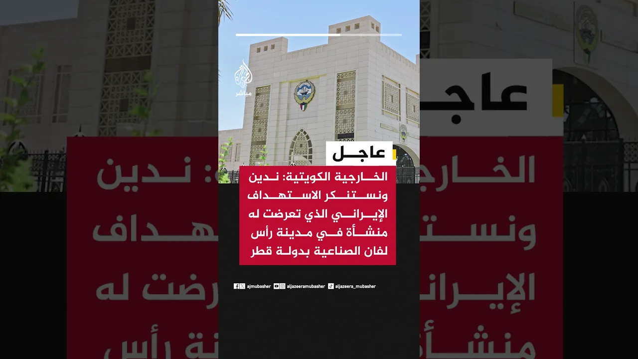 عاجل | الخارجية الكويتية: ندين ونستنكر الاستهداف الإيراني الذي تعرضت له منشأة في مدينة رأس لفان الصناعية بدولة قطر الشقيقة