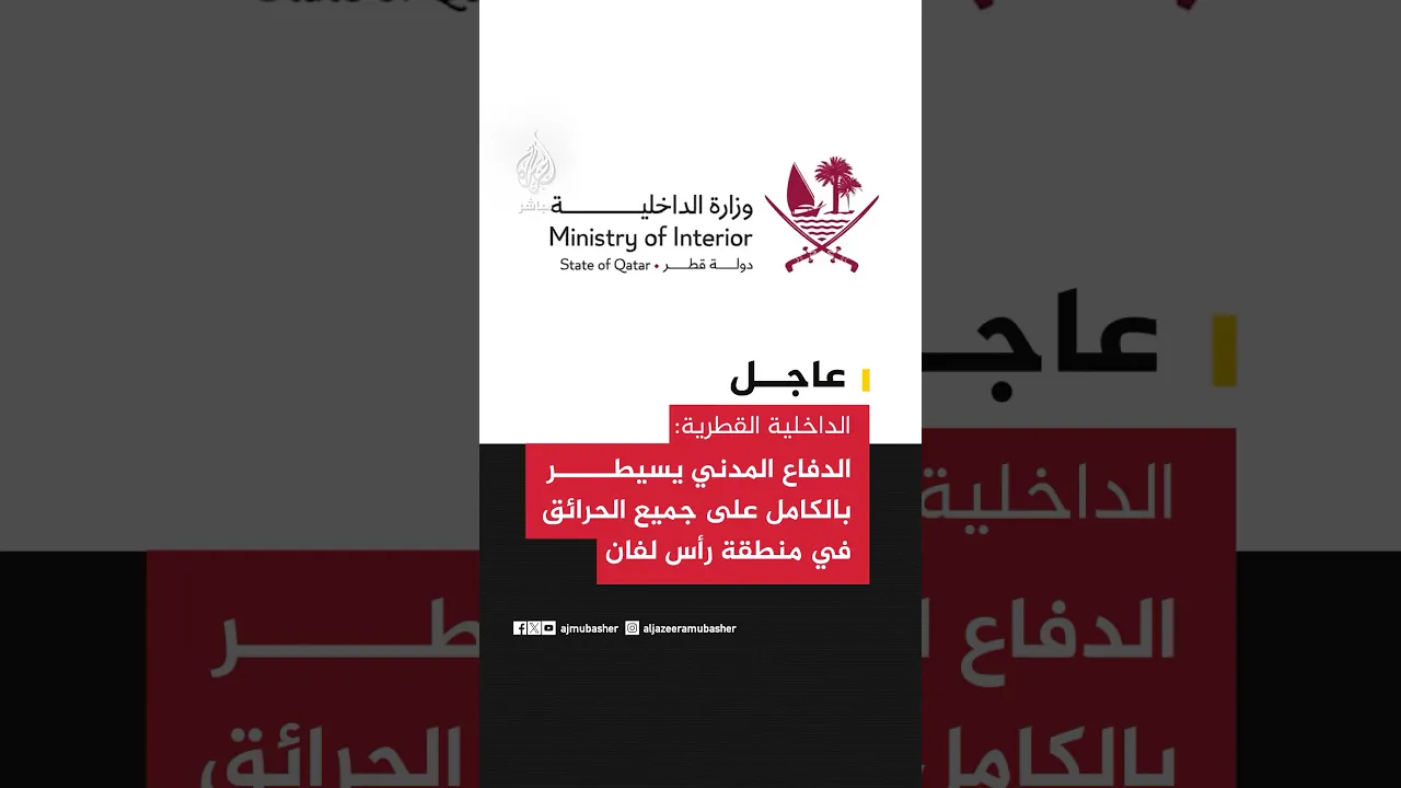 الداخلية القطرية: الدفاع المدني يسيطر بالكامل على جميع الحرائق في منطقة رأس لفان الصناعية