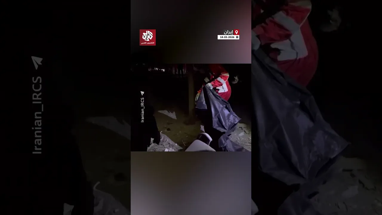 تدخل فرق الهلال الأحمر الإيراني بعد غارة جوية على منطقة سكنية في طهران
