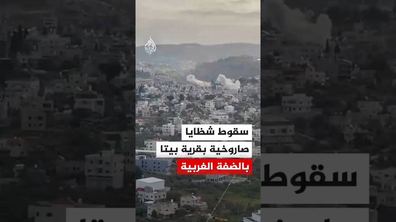 مشاهد توثق سقوط شظايا صاروخية على مبنى في بلدة بيتا، جنوب نابلس، بالضفة الغربية.
