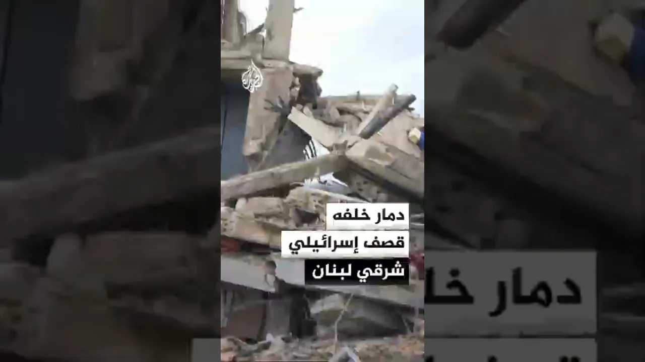 آثار دمار خلفه قصف إسرائيلي على بلدة شعث شرقي لبنان ترصدها مراسلة الجزيرة كاترين حنا