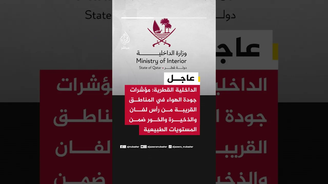 عاجل | الداخلية القطرية: مؤشرات جودة الهواء في المناطق القريبة من رأس لفان والذخيرة والخور ضمن المستويات الطبيعية