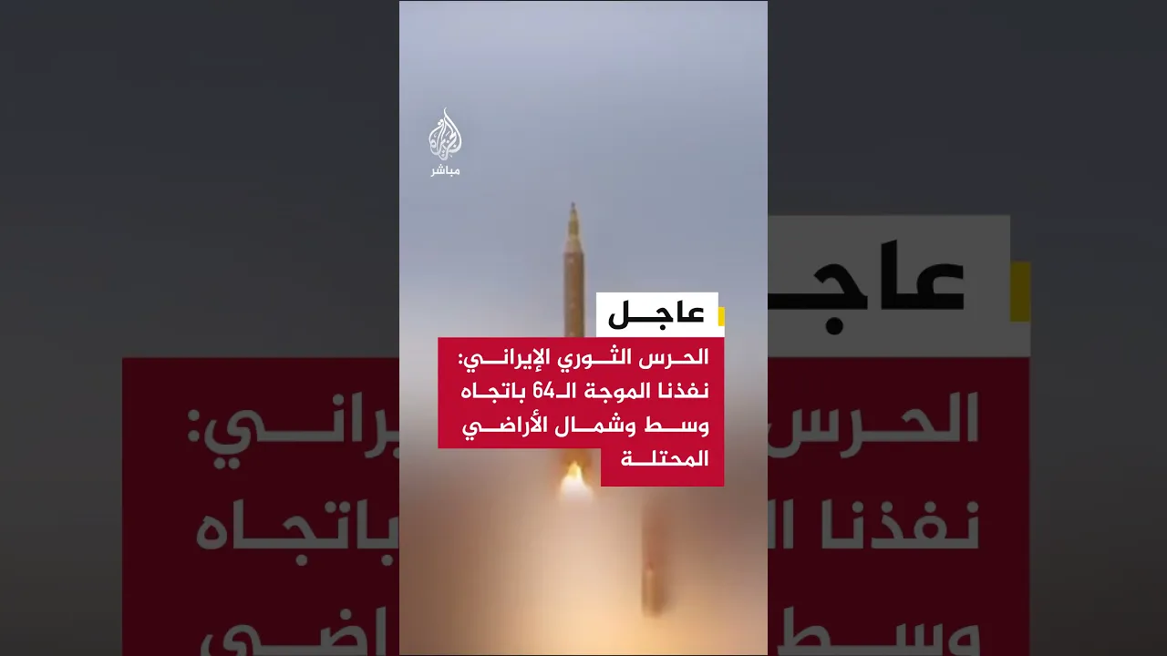 عاجل | الحرس الثوري الإيراني: نفذنا الموجة الـ64 ضمن عمليات الوعد الصادق 4 ضد أهداف في وسط وشمال الأراضي المحتلة