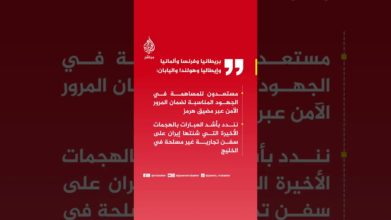 عاجل | بيان لبريطانيا وفرنسا وألمانيا وإيطاليا وهولندا واليابان: