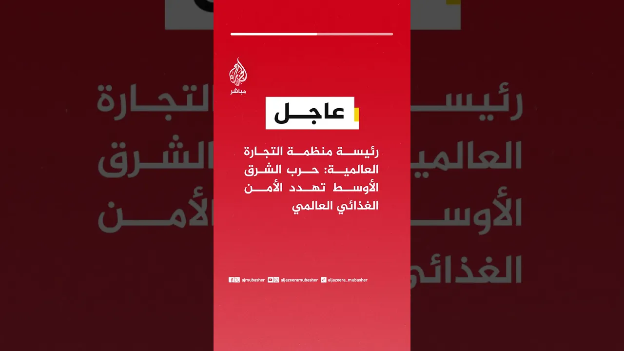 عاجل | رئيسة منظمة التجارة العالمية: حرب الشرق الأوسط تهدد الأمن الغذائي العالمي