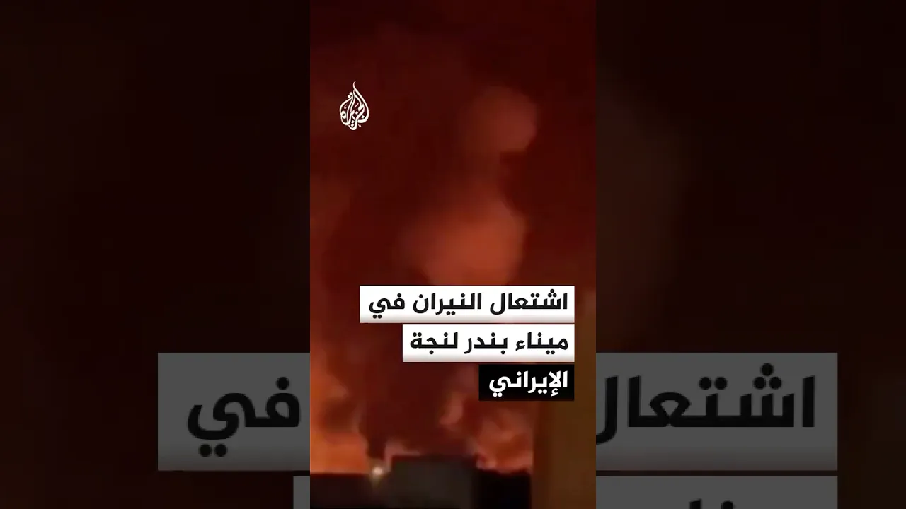 اشتعال النيران في ميناء بندر لنجة الإيراني إثر غارة جوية