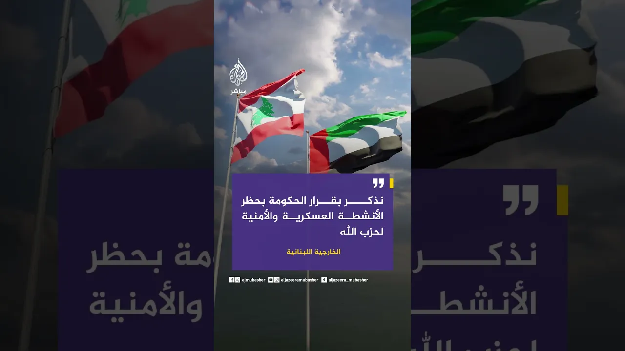 الخارجية اللبنانية تدين ضلوع حزب الله بالمخطط الإرهابي ضد الإمارات وتؤكد التزام لبنان بسيادته وحظر أي نشاط مسلح خارج الدولة.