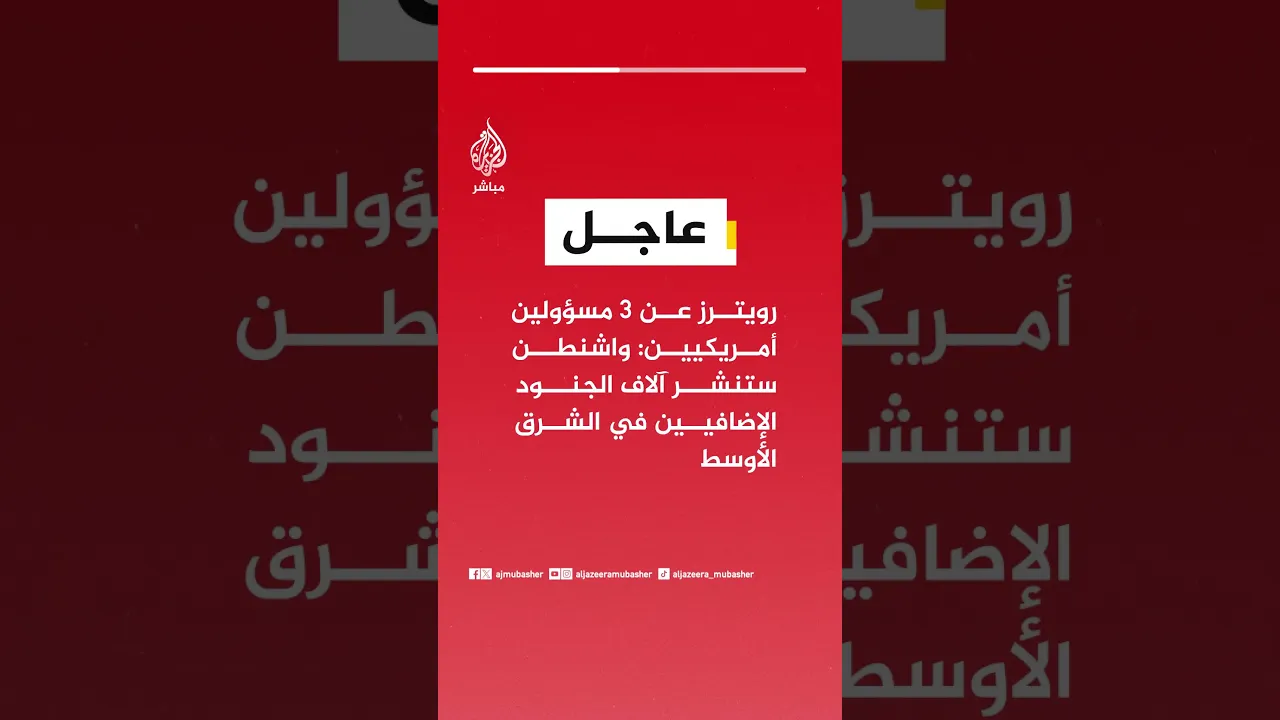 عاجل | رويترز عن 3 مسؤولين أمريكيين: واشنطن ستنشر آلاف الجنود الإضافيين في الشرق الأوسط
