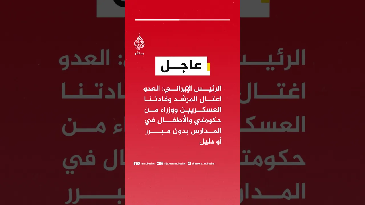 عاجل | الرئيس الإيراني: العدو اغتال المرشد وقادتنا العسكريين ووزراء من حكومتي والأطفال في المدارس بدون مبرر أو دليل