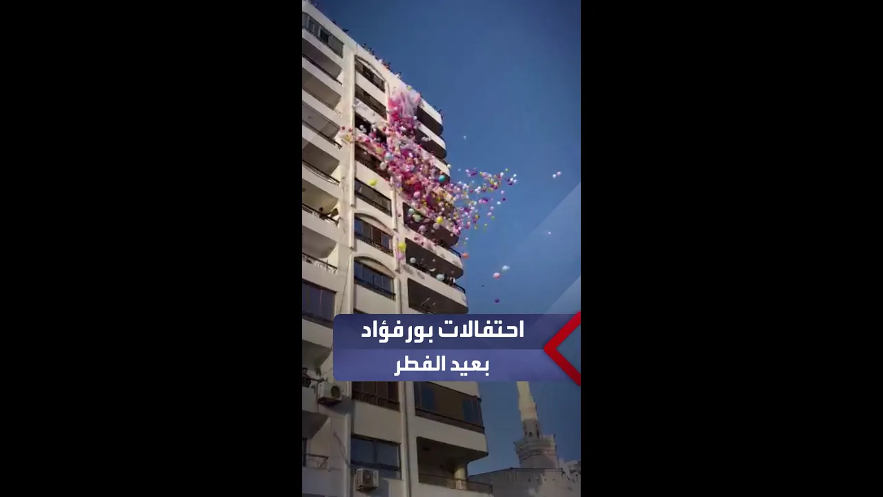 "شلال من البالونات" يرسم البسمة على وجوه الأهالي ويلون سماء مدينة بورفؤاد صباح يوم العيد