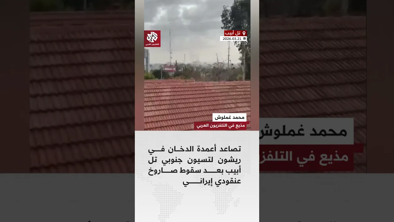 صور تظهر تصاعد أعمدة الدخان في ريشون لتسيون جنوبي تل أبيب بعد سقوط صاروخ عنقودي إيراني
