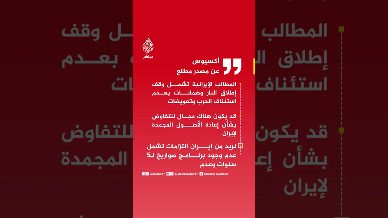 🟥 المطالب الإيرانية تشمل وقف إطلاق النار وضمانات بعدم استئناف الحرب وتعويضات