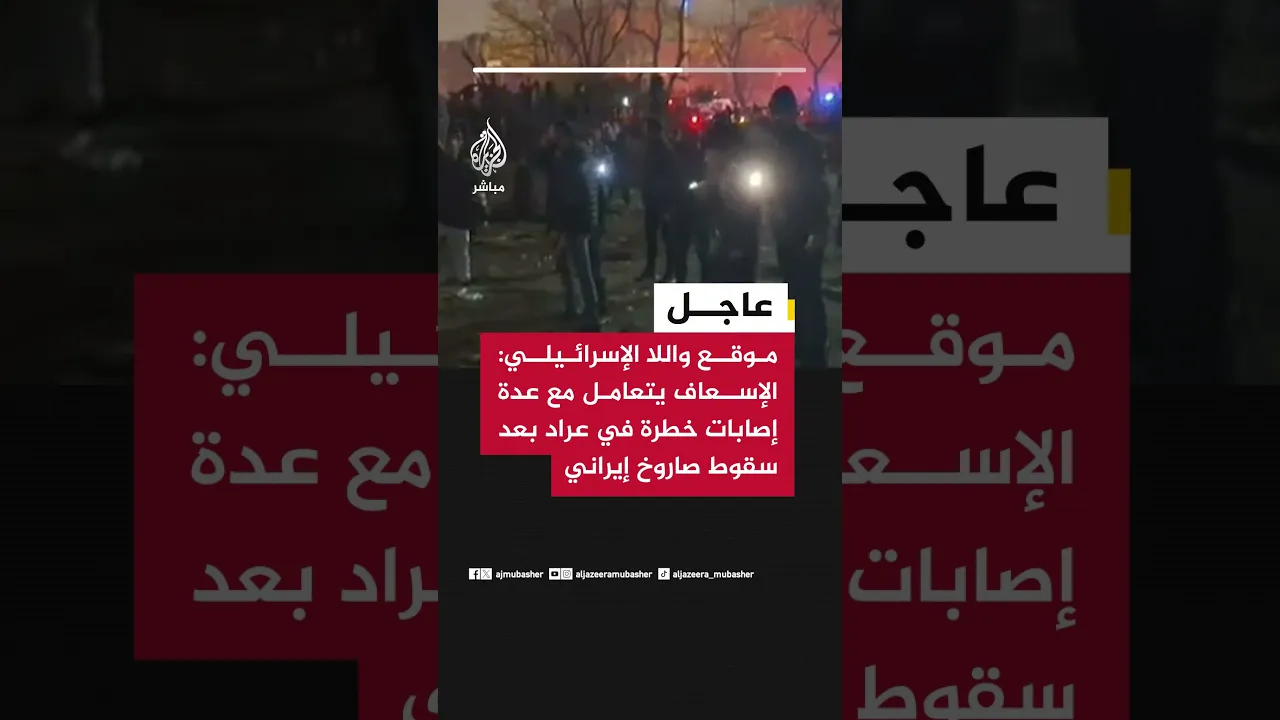 عاجل | موقع واللا الإسرائيلي: الإسعاف يتعامل مع عدة إصابات خطرة في عراد بعد سقوط صاروخ إيراني