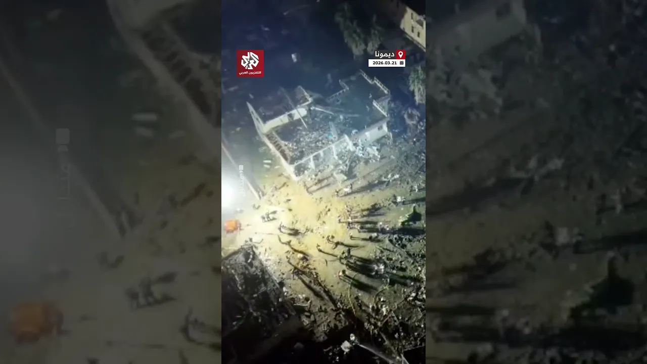 مشاهد جوية تظهر دمارا واسعا في موقع سقوط صاروخ إيراني في ديمونا جنوب إسرائيل
