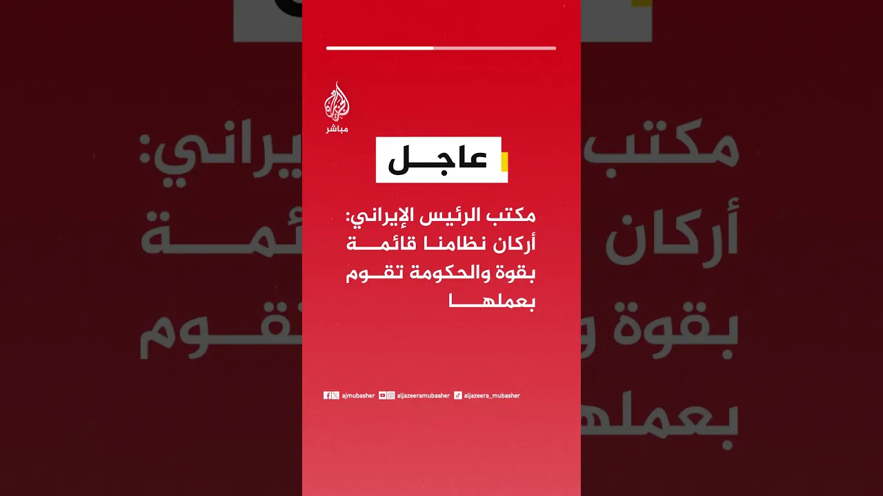 عاجل | مكتب الرئيس الإيراني: أركان نظامنا قائمة بقوة والحكومة تقوم بعملها