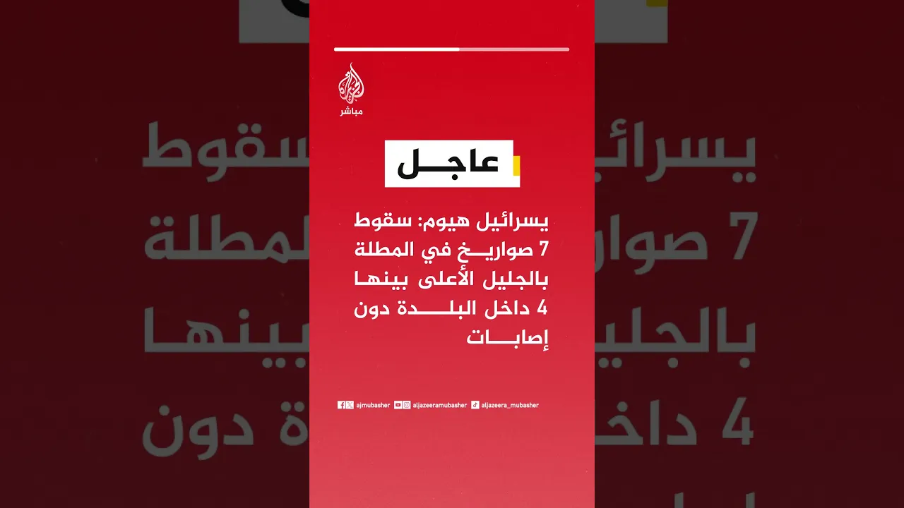 يسرائيل هيوم: سقوط 7 صواريخ في المطلة بالجليل الأعلى بينها 4 داخل البلدة دون إصابات