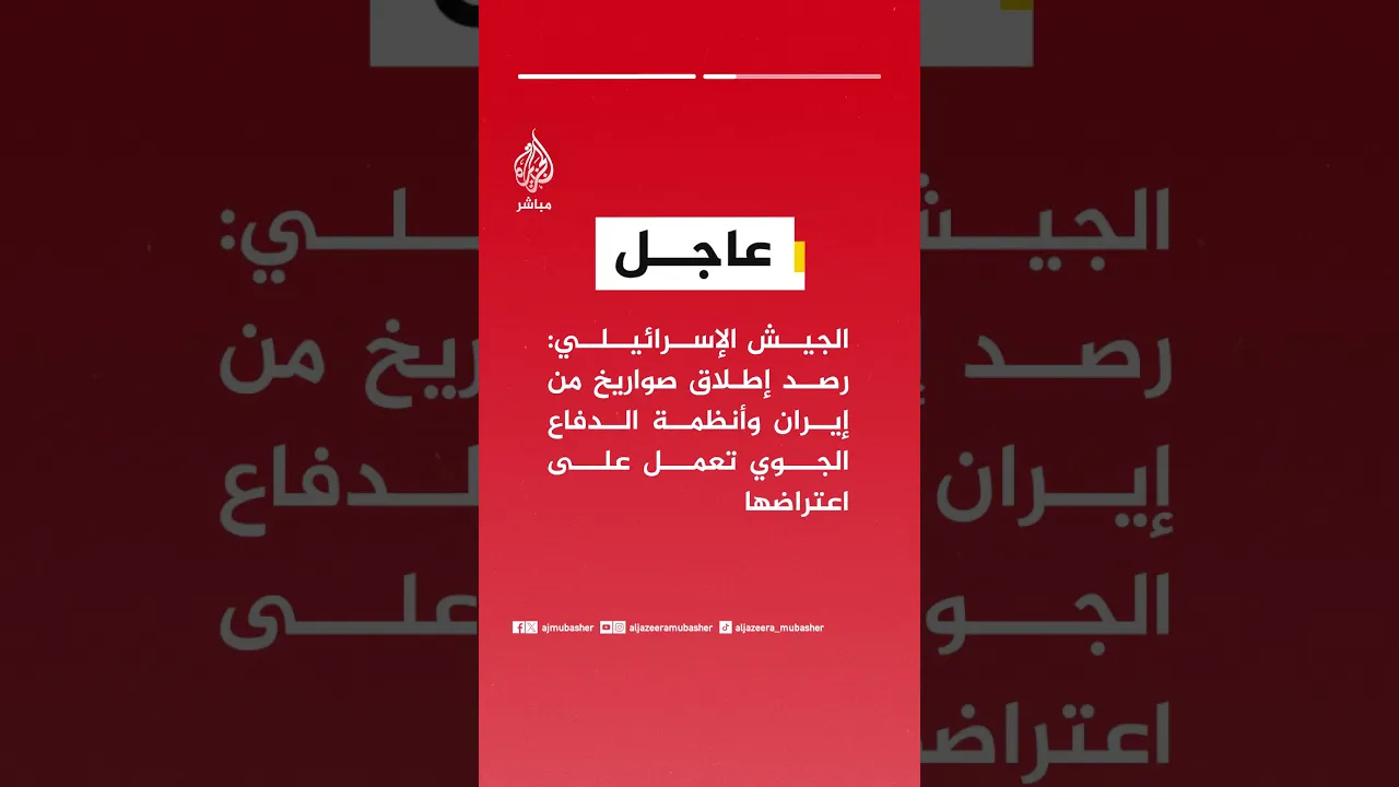 🟥 الجيش الإسرائيلي: رصد إطلاق صواريخ من إيران وأنظمة الدفاع الجوي تعمل على اعتراضها
