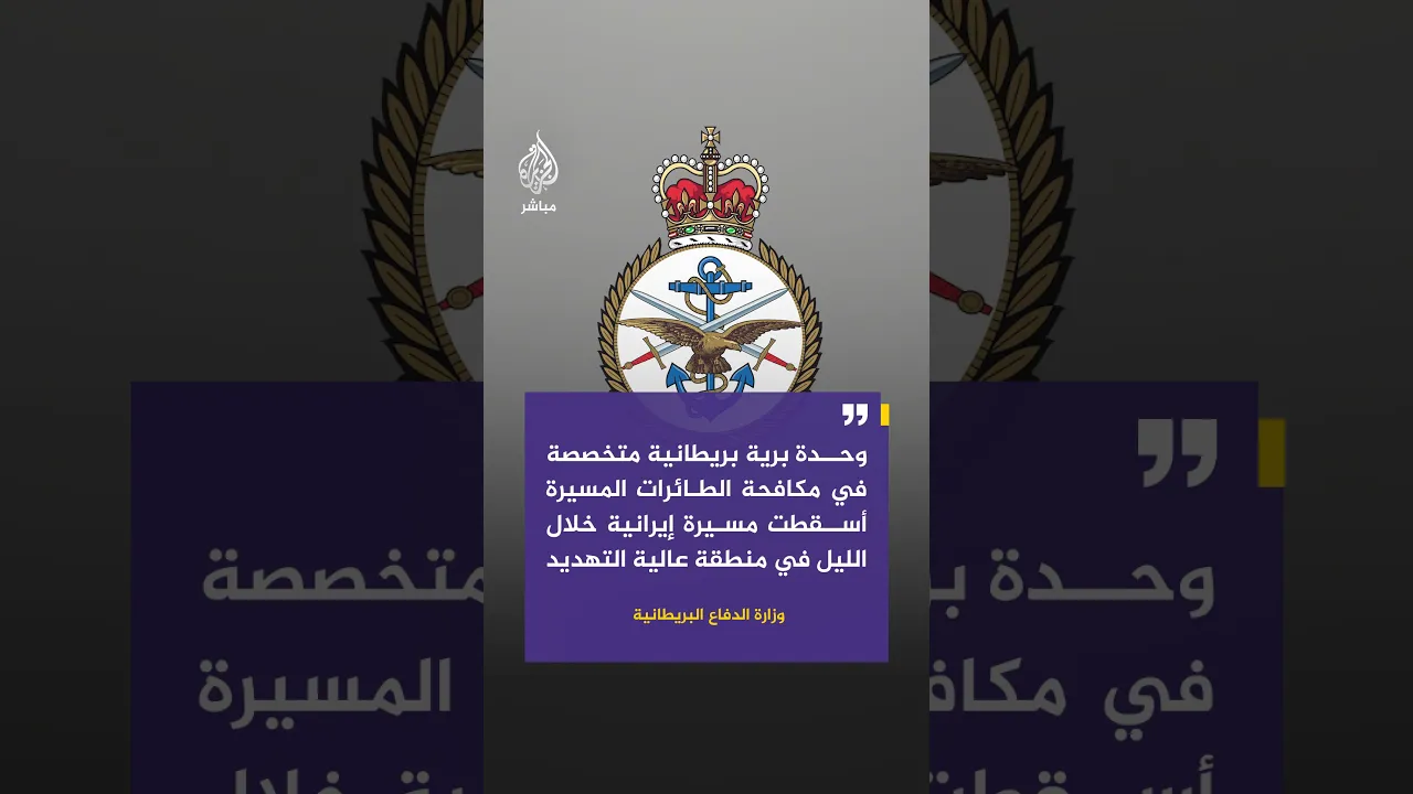 الدفاع البريطانية: وحدة برية بريطانية متخصصة في مكافحة الطائرات المسيرة أسقطت مسيرة إيرانية في منطقة عالية التهديد