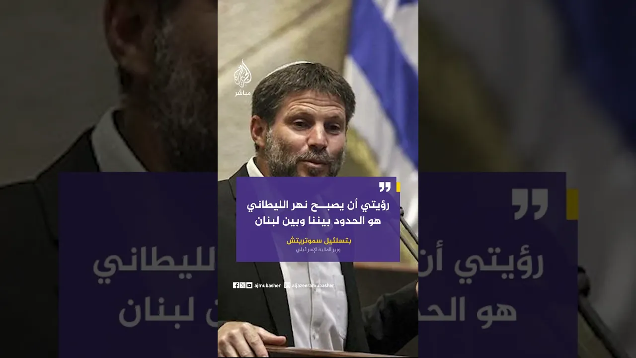 عاجل | وزير المالية الإسرائيلي سموتريتش: رؤيتي أن يصبح نهر الليطاني هو الحدود بيننا وبين لبنان.