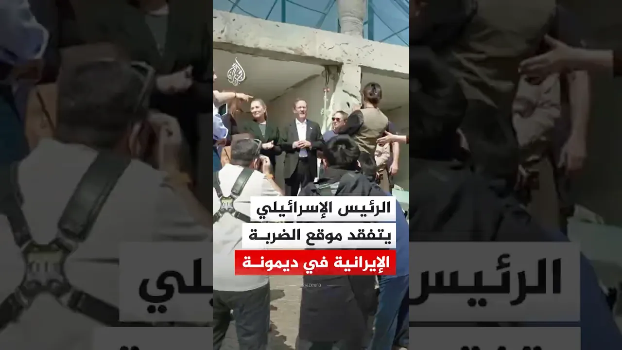 الرئيس الإسرائيلي إسحاق هرتسوغ يتفقد موقع الضربة الصاروخية الإيرانية في ديمونة، حيث استهدفت صواريخ إيرانية مدينتي ديمونة وعراد مساء السبت٬ ما أسفر عن إصابة العشرات.