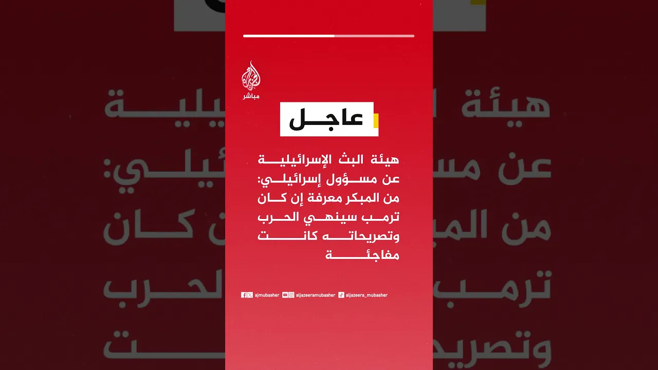 هيئة البث الإسرائيلية عن مسؤول إسرائيلي: من المبكر معرفة إن كان ترمب سينهي الحرب وتصريحاته كانت مفاجئة