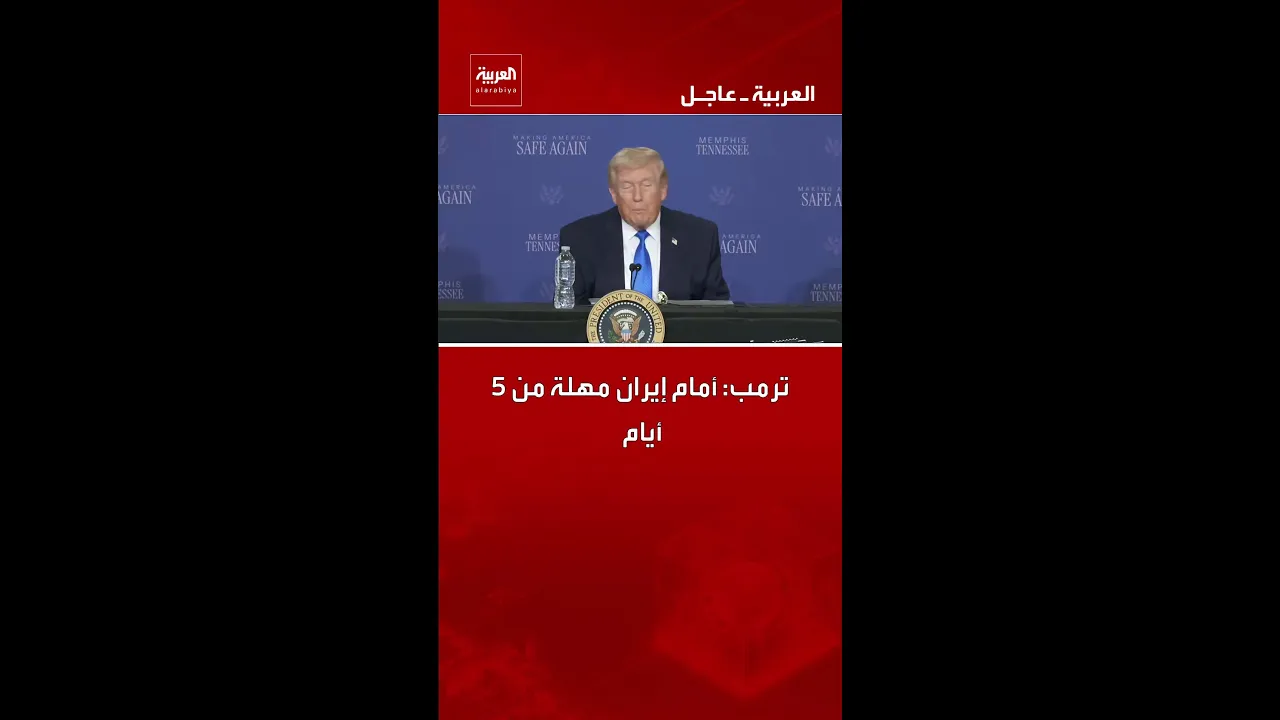 الرئيس الأمريكي دونالد ترمب: أمام إيران مهلة من 5 أيام