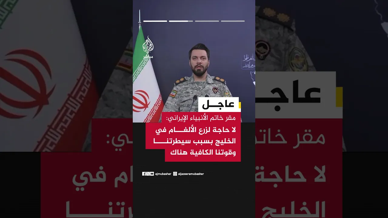 عاجل | مقر خاتم الأنبياء الإيراني: نمتلك زمام المبادرة في مياه الخليج وبحر عمان ونتحكم بذكاء واقتدار في مضيق هرمز