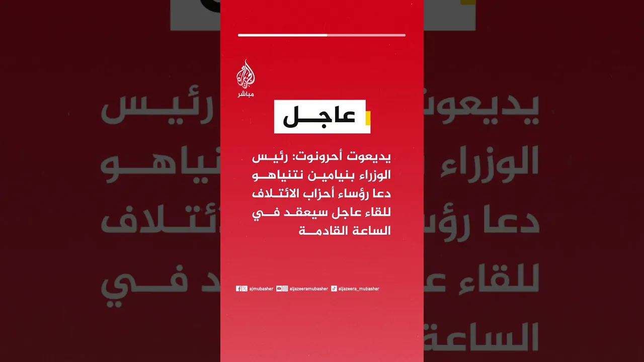 عاجل | يديعوت أحرونوت: رئيس الوزراء بنيامين نتنياهو دعا رؤساء أحزاب الائتلاف للقاء عاجل سيعقد في الساعة القادمة
