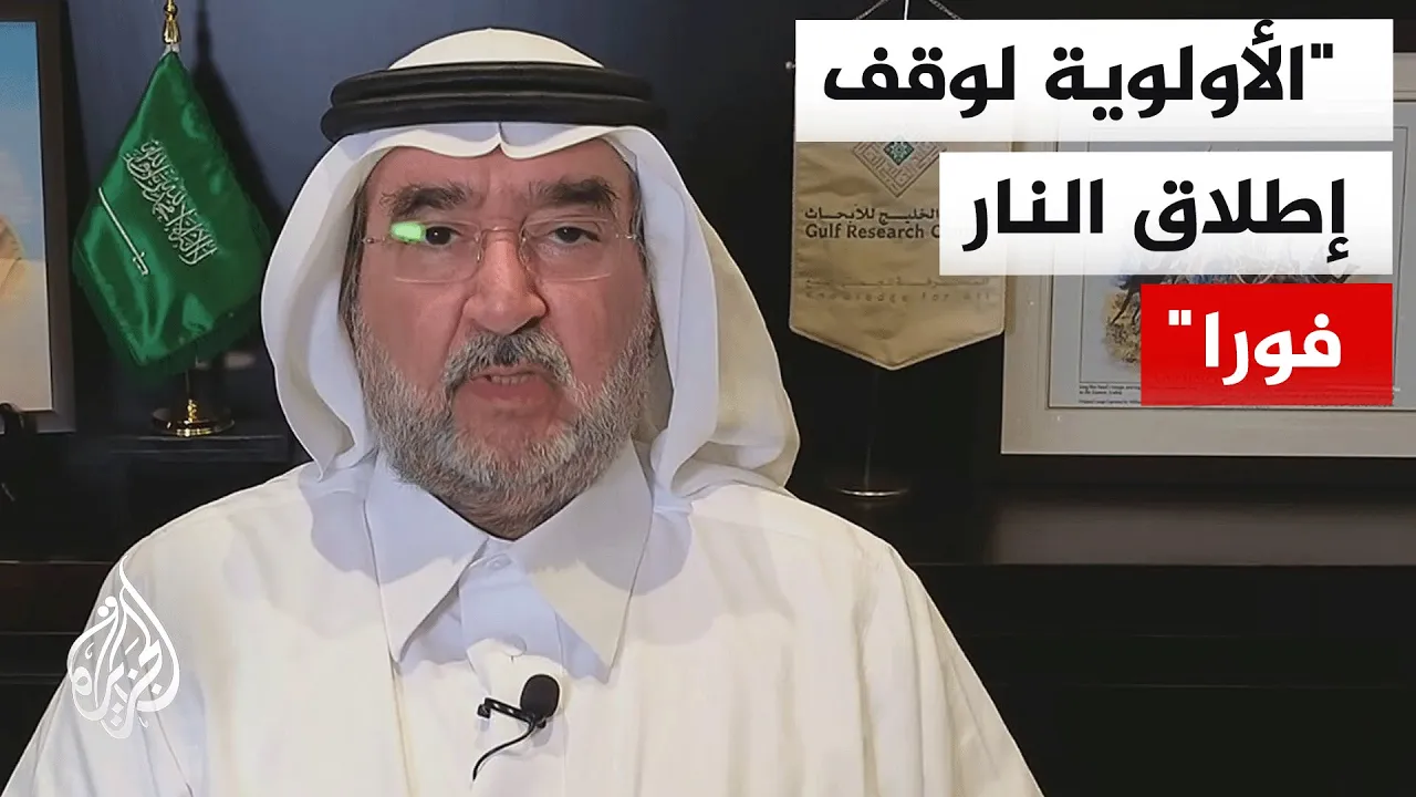 قال الدكتور عبد العزيز بن صقر رئيس مركز الخليج للأبحاث إن الإعلان الأمريكي كان مفاجئا، وكان من المتوقع أن تقوم إيران بخطوة مقابلة، مثل إعلان ضمان حرية الملاحة كبادرة حسن نية، خاصة بعد منح فرصة للمفاوضات. وأضاف أن الأولوية الآن يجب أن تكون لوقف إطلاق النار فورا، مع إيجاد ضمانات مستدامة لعدم الاعتداء. كما أن هناك أضرارًا لحقت بدول المنطقة، ويجب طرح مسألة التعويضات، كما حدث بعد غزو العراق للكويت.
