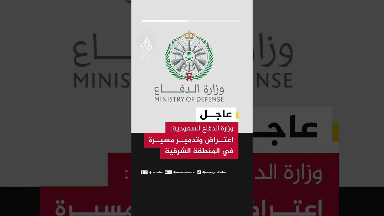 عاجل | وزارة الدفاع السعودية: اعتراض وتدمير مسيرة في المنطقة الشرقية