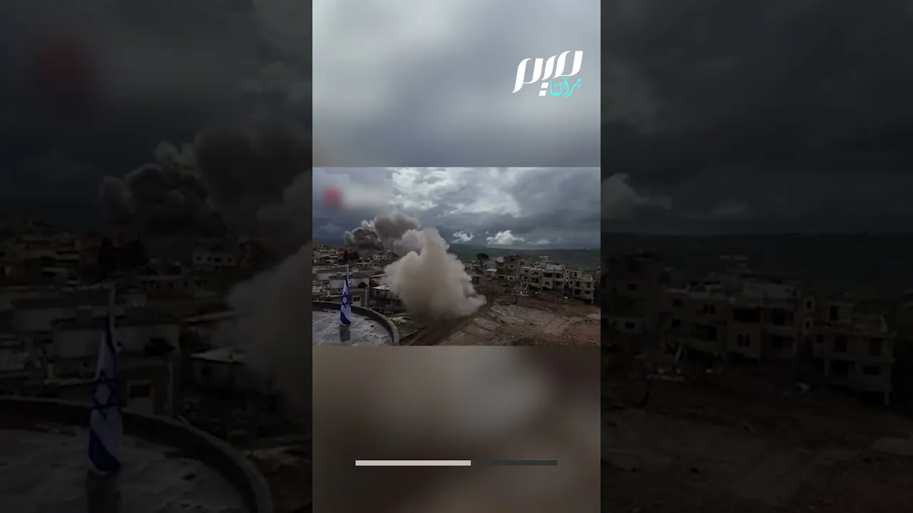 جيش الاحتلال الإسرائيلي يفجر مئذنة مسجد ومنازل مدنية في مدينة الخيام، جنوب لبنان.