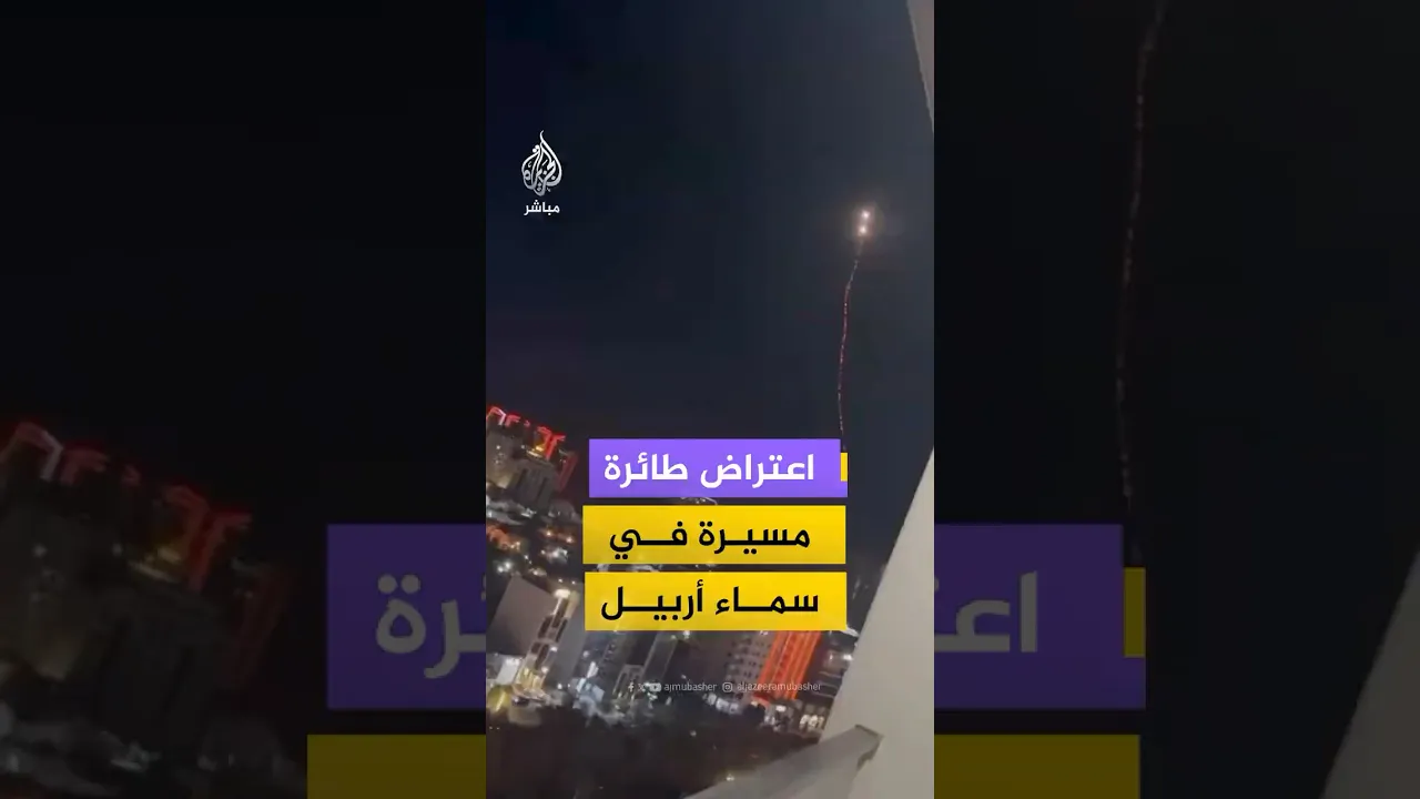 مشاهد توثق اعتراض الدفاعات الجوية طائرة مسيرة في سماء أربيل بإقليم كردستان العراق