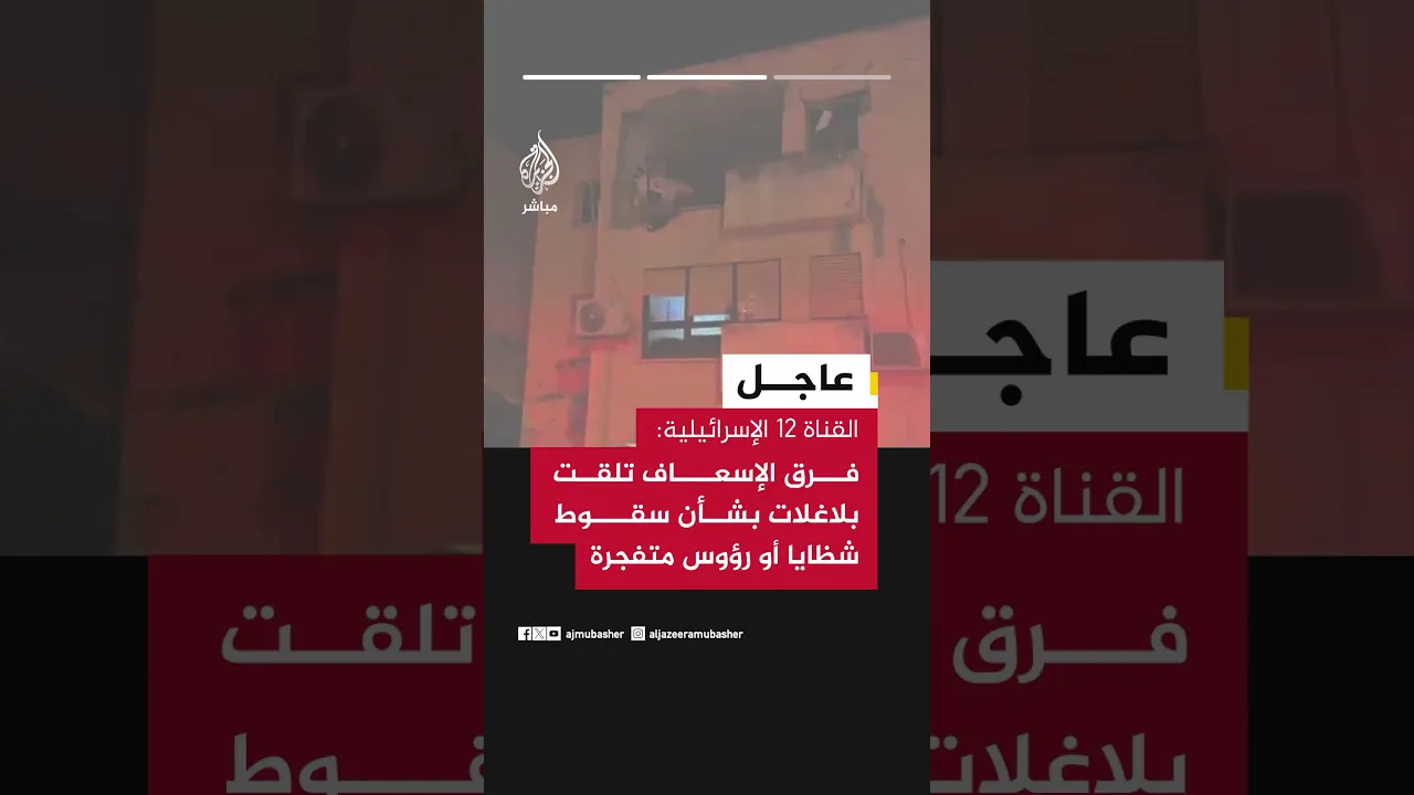 القناة 12 الإسرائيلية: فرق الإسعاف والإنقاذ تمشط مواقع في حيفا ومحيطها عقب تلقي بلاغلات بشأن سقوط شظايا أو رؤوس متفجرة