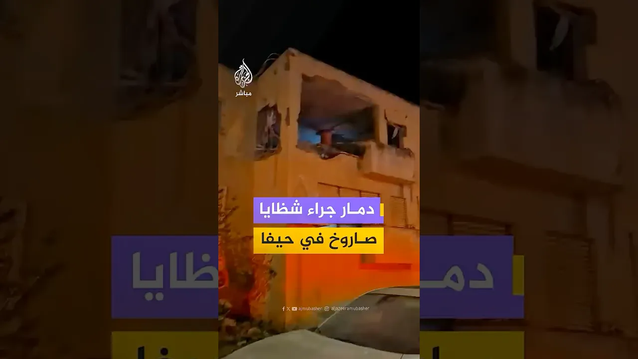 مشاهد توثق آثار الدمار عقب سقوط شظايا صاروخ على منطقة نيشر قرب حيفا شمال إسرائيل