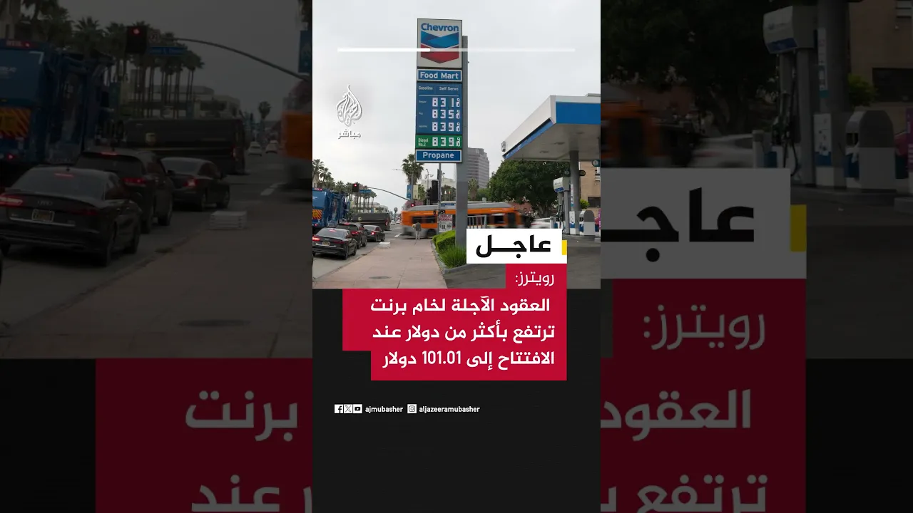 عاجل | رويترز: العقود الآجلة لخام برنت ترتفع بأكثر من دولار عند الافتتاح إلى 101.01 دولار