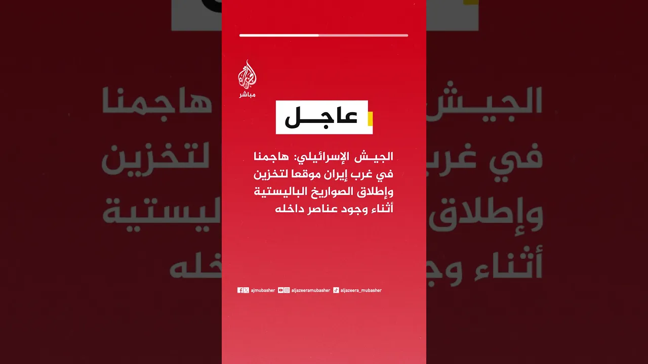 عاجل | الجيش الإسرائيلي: هاجمنا في غرب إيران موقعا لتخزين وإطلاق الصواريخ الباليستية أثناء وجود عناصر داخله