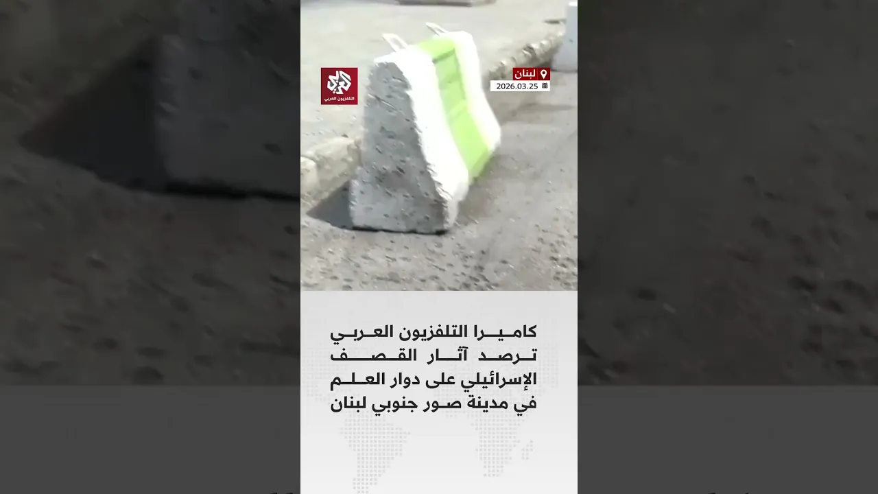 كاميرا التلفزيون العربي ترصد آثار القصف الإسرائيلي على دوار العلم في مدينة صور جنوبي لبنان.