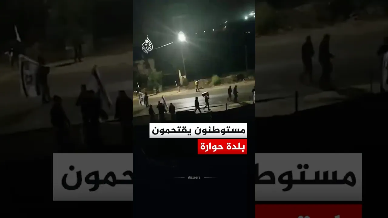 وسط رفع الأعلام الإسرائيلية.. مشاهد توثق اقتحام مستوطنين بلدة حوارة جنوب مدينة نابلس في الضفة الغربية.