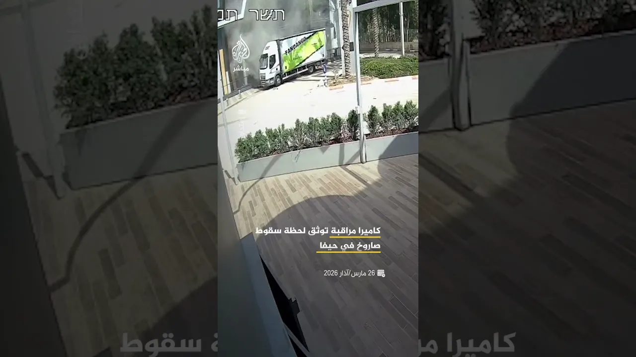 كاميرا مراقبة توثق لحظة سقوط صاروخ بكريات اتا في #حيفا شمالي #إسرائيل