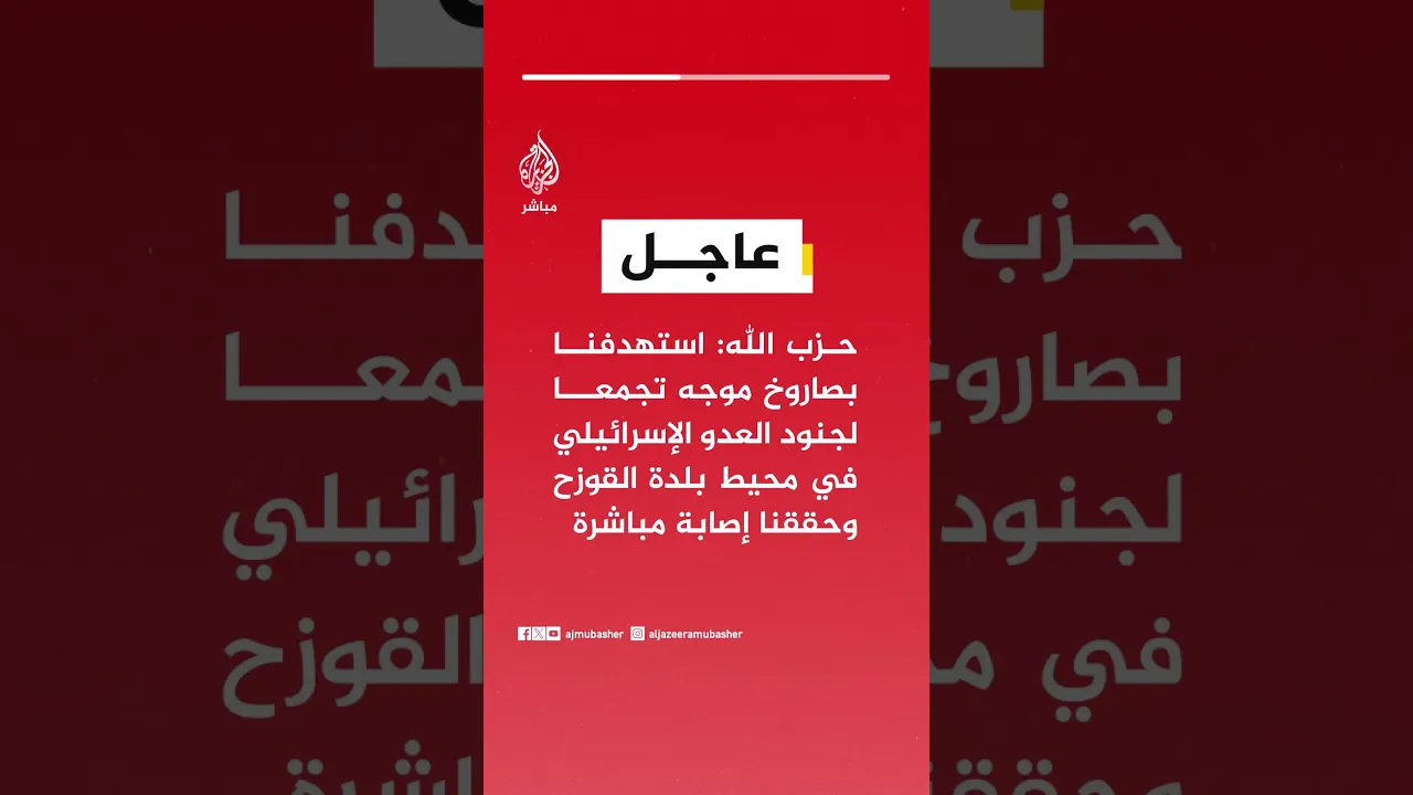 عاجل | حـ ـزب الله: استهدفنا بصاروخ موجه تجمعا لجنود العدو الإسرائيلي في محيط بلدة القوزح وحققنا إصابة مباشرة