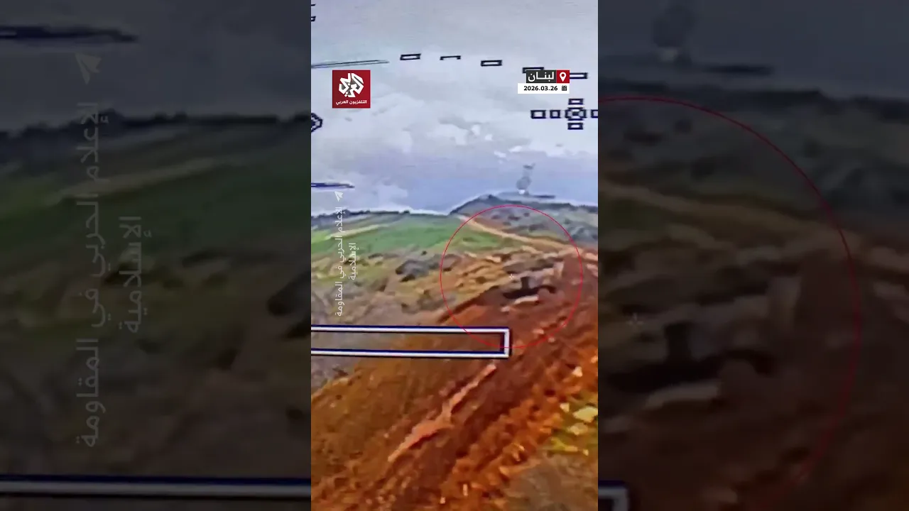 حزب الله يعرض مشاهد للحظة استهداف ميركافا إسرائيلية بمسيرة انقضاضية جنوب لبنان