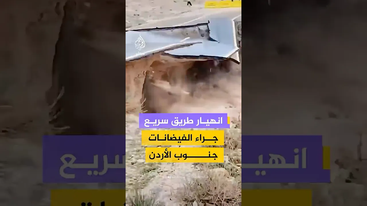 انهيار جزء من الطريق الملوكي في الطفيلة جنوبي #الأردن إثر فيضان سد "شيظم"