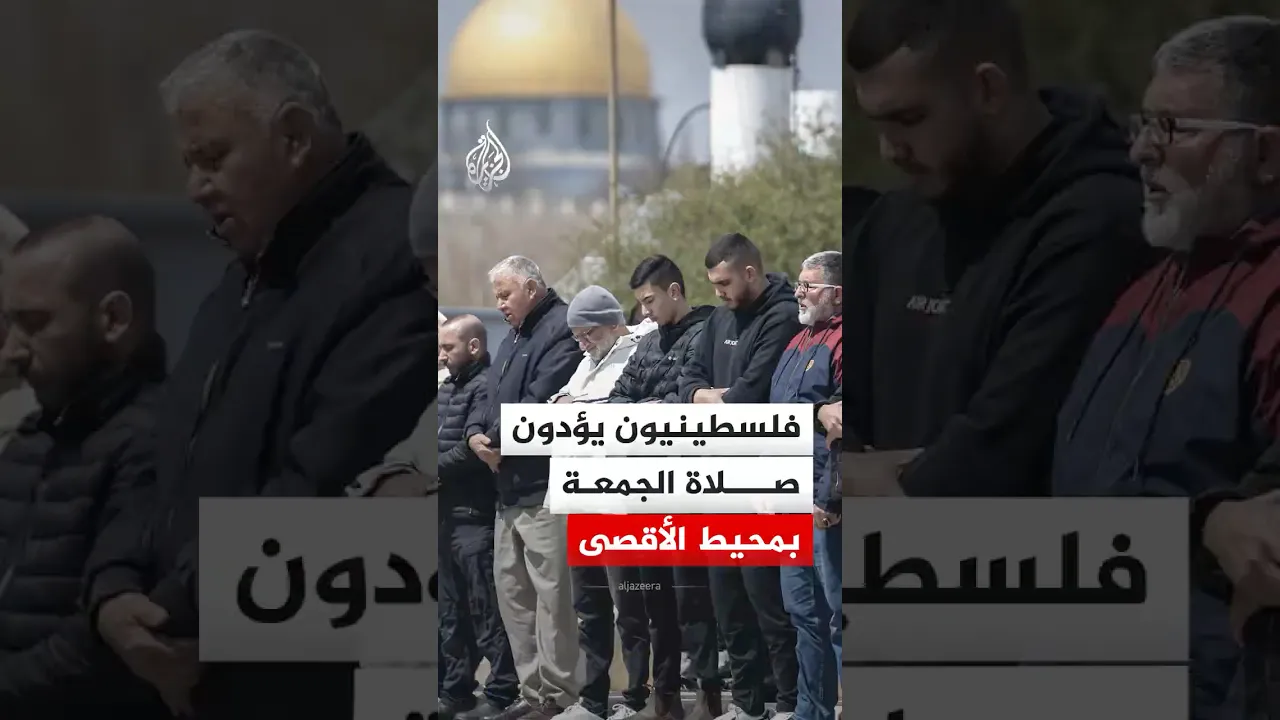 فلسطينيون يؤدّون صلاة الجمعة في محيط المسجد الأقصى بعد منعهم من الوصول إليه للأسبوع الرابع على التوالي، وسط تشديد أمني على مداخل البلدة القديمة في القدس، بذريعة حالة الطوارئ المرتبطة بالحرب على إيران.