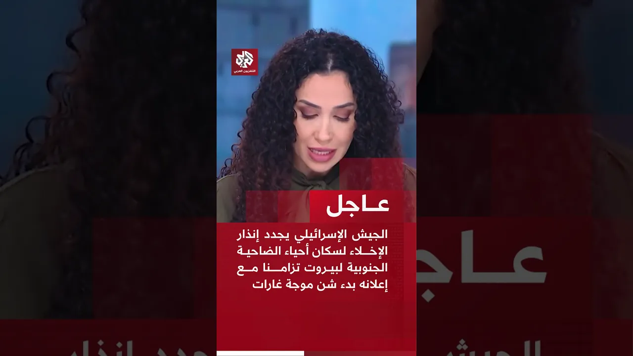 عاجل | الجيش الإسرائيلي يجدد إنذار الإخلاء لسكان أحياء الضاحية الجنوبية لبيروت تزامنا مع إعلانه بدء شن موجة غارات